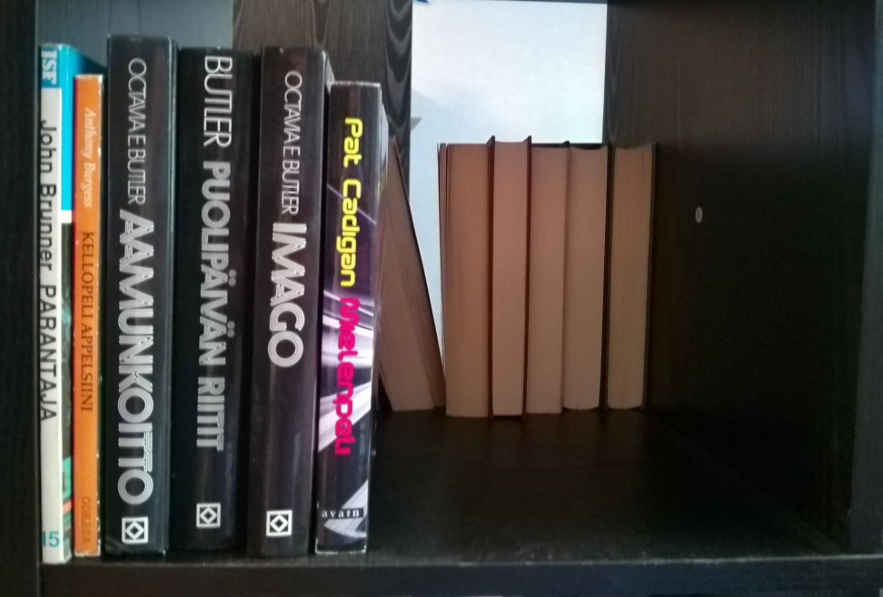 Tein päätöksen: Jos joltakin kirjailijalta on kaksi kirjaa lukematta, luen niistä toisen. Jos lukematta on useampia, luen kaksi. Aloin käydä kirjahyllyä läpi alusta asti. Muistaakseni sain kokoelman läpi kaksi kertaa, joskaan kaikkiin kirjailijoihin en tutustunut silloinkaan, kuten sarjan edellisestä merkinnästä sai lukea. Butlerin trilogia oli niin mielenkiintoinen, että luin sen loppuun ilman mitään ohjaavaa raamia.